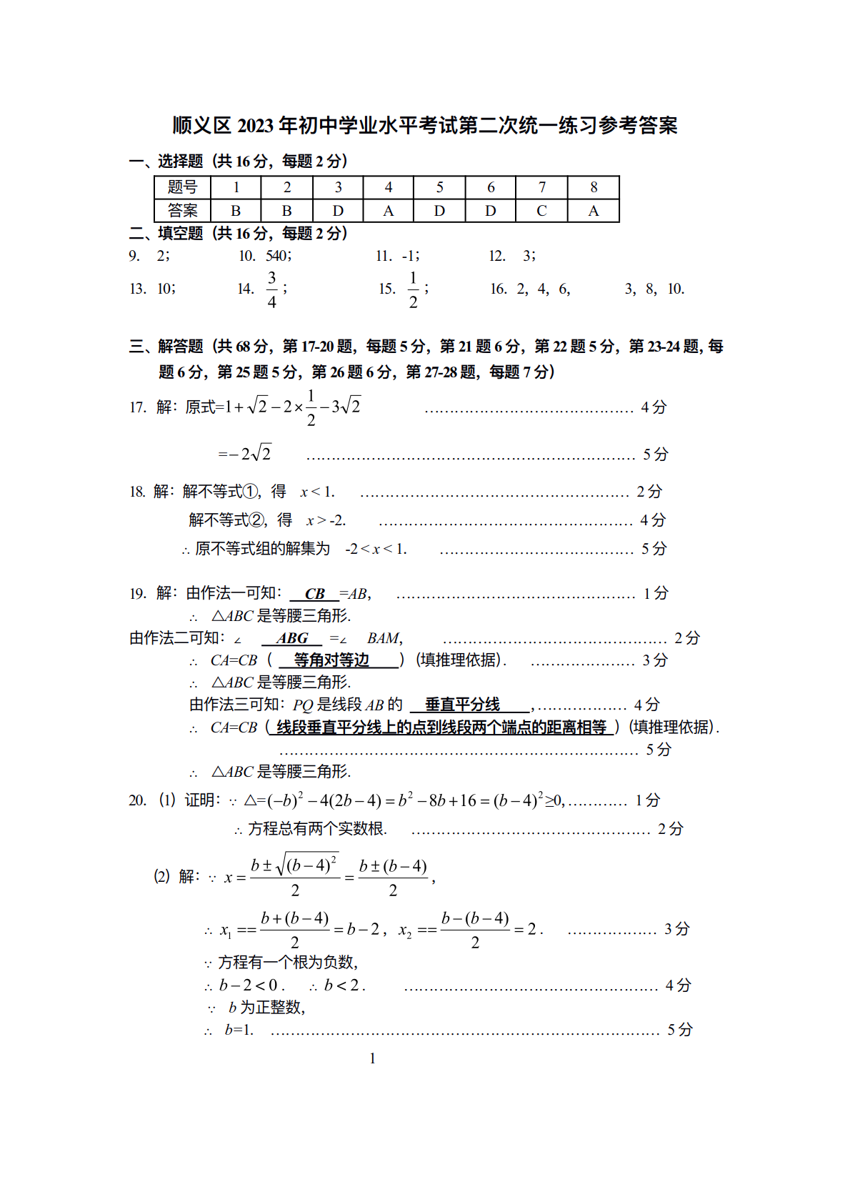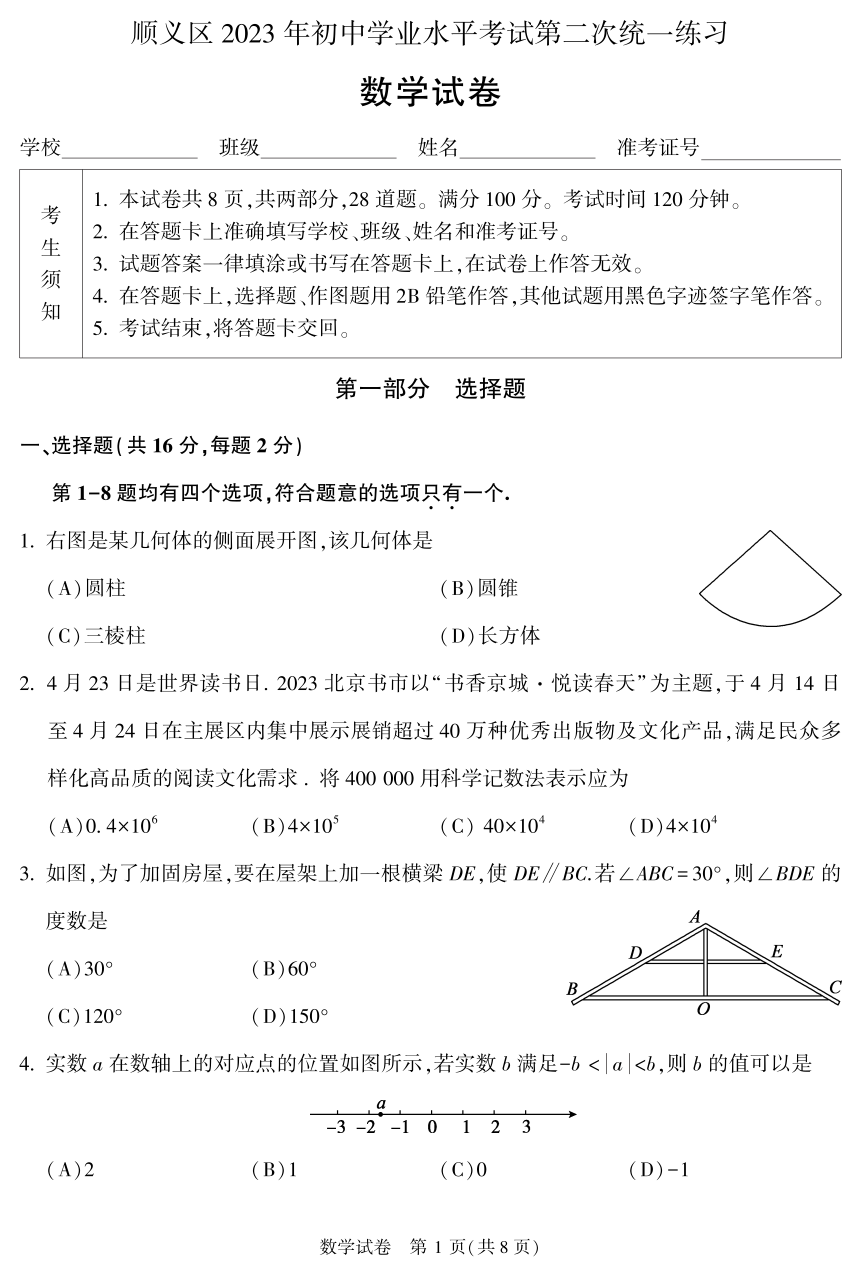 2023北京顺义区初三二模正在进行,admw360中考网为大家整理了数学试题及答案,分享给大家。