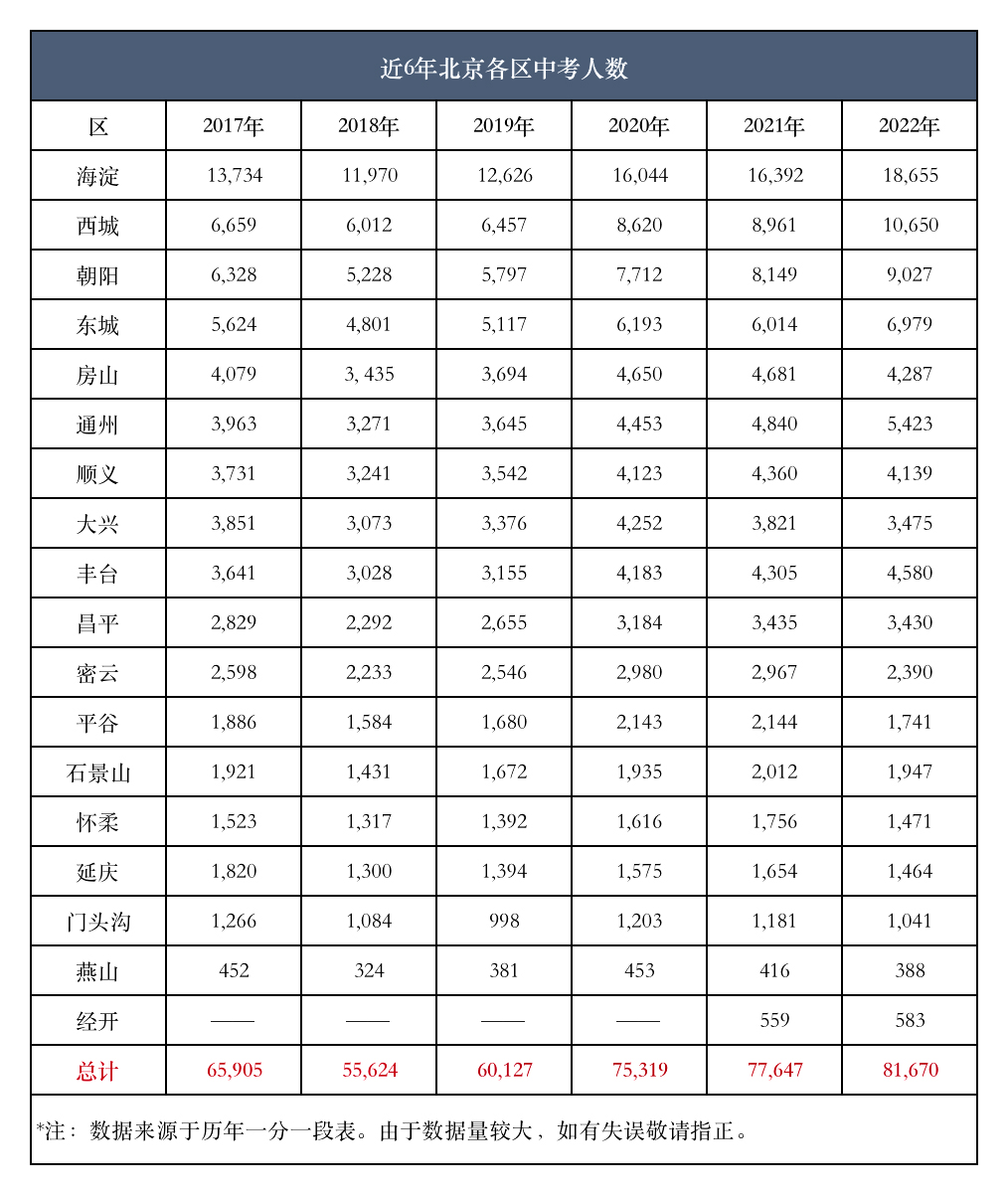 接下来再分享一组往年各区的中考生人数,各位考生家长可作参考↓