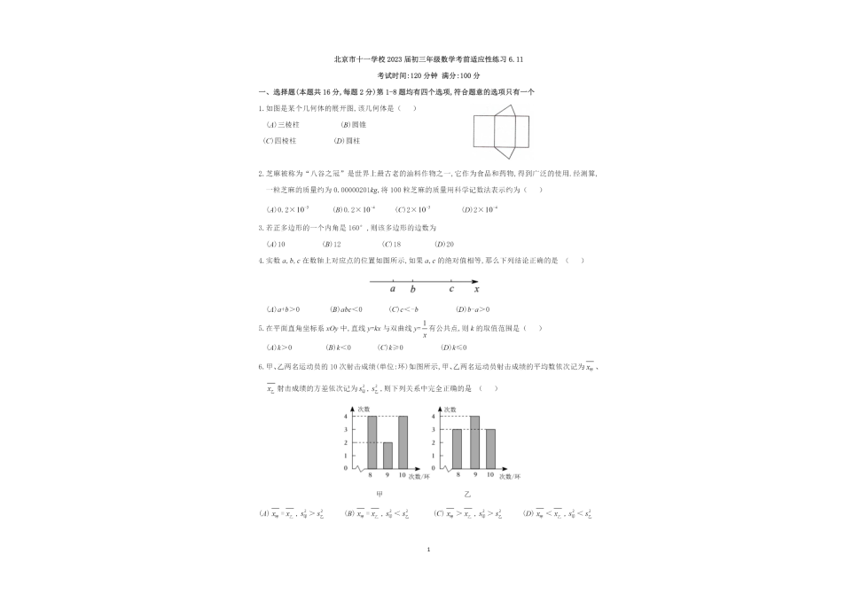 admw360中考网整理了2023北京十一学校初三三模数学试题,考生和家长可自行下载!