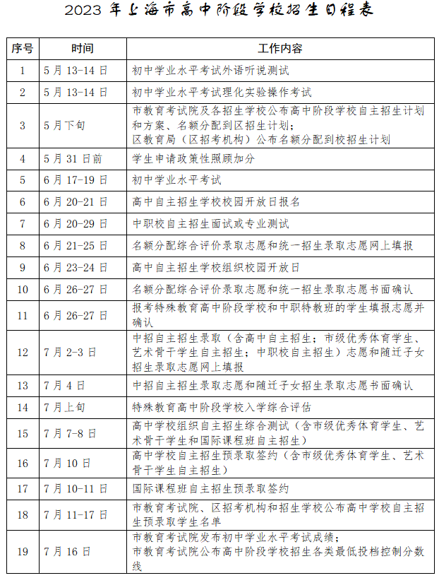 2023年上海市初中学业水平考试于6月17日至19日举行。全市设17个考区、198个考点、4200余个考场,约23万考生参加考试,其中初三考生约11万人(参加17至19日语文、综合测试笔试、外语笔试、数学、道德与法治科目的考试),初二考生约12万人(仅参加19日历史科目的考试)。