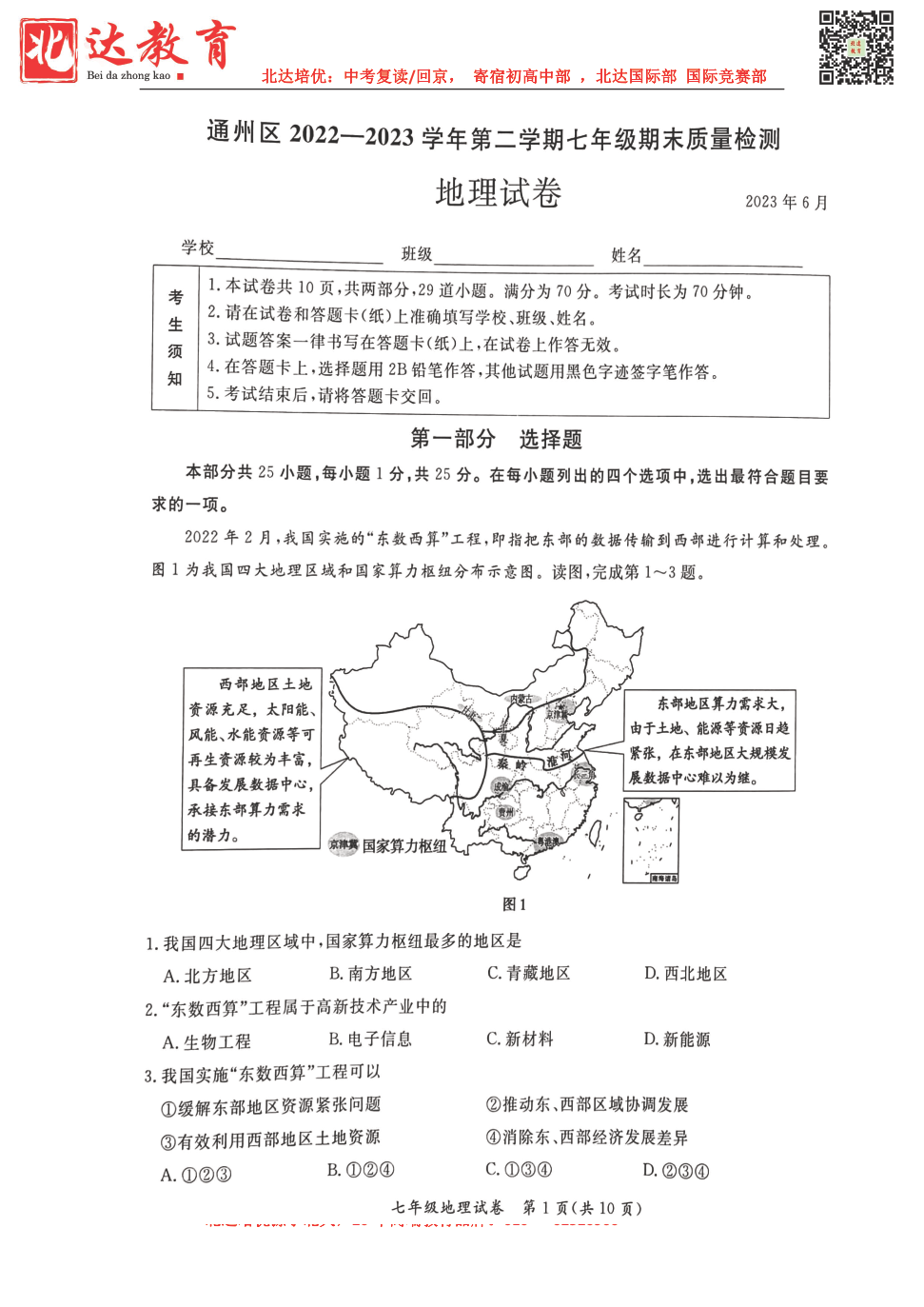 2023北京各区初一期末考已陆续开始,admw360中考网为大家整理了 试题及答案,分享给大家。