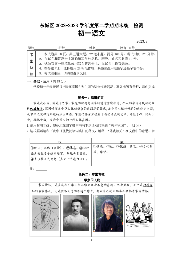 首页 初一试题 2023北京东城区初一(下)期末语文试题及答案