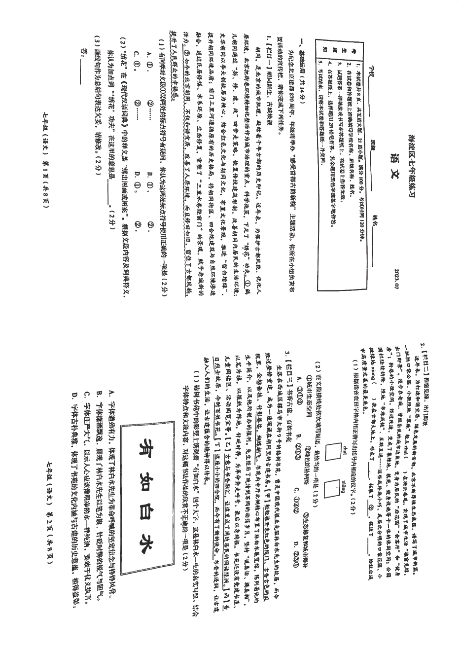首页 初一试题 2023北京海淀区初一(下)期末语文试题及答案