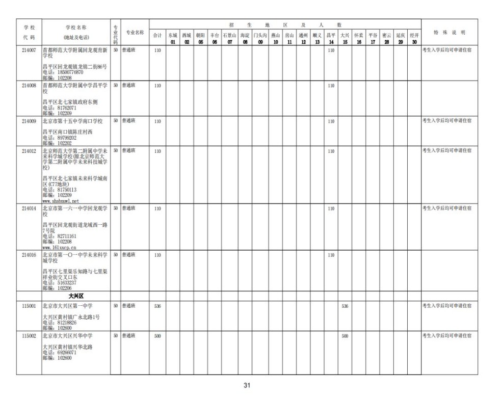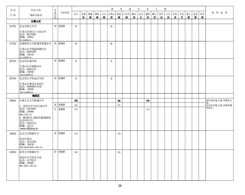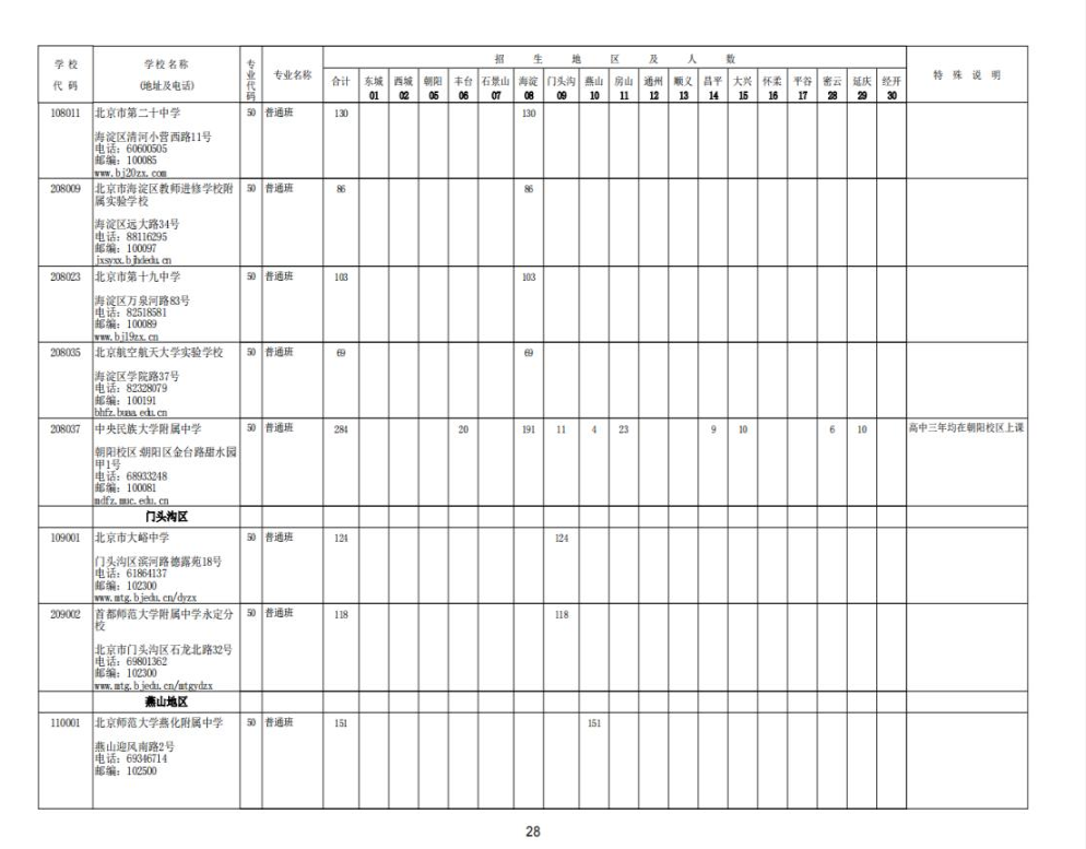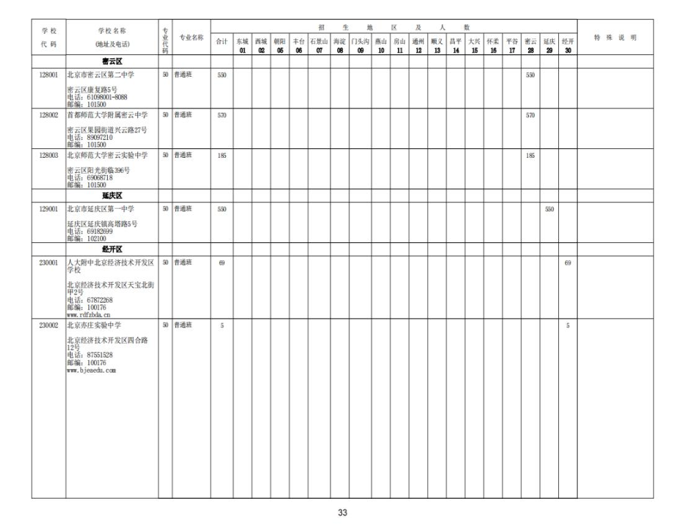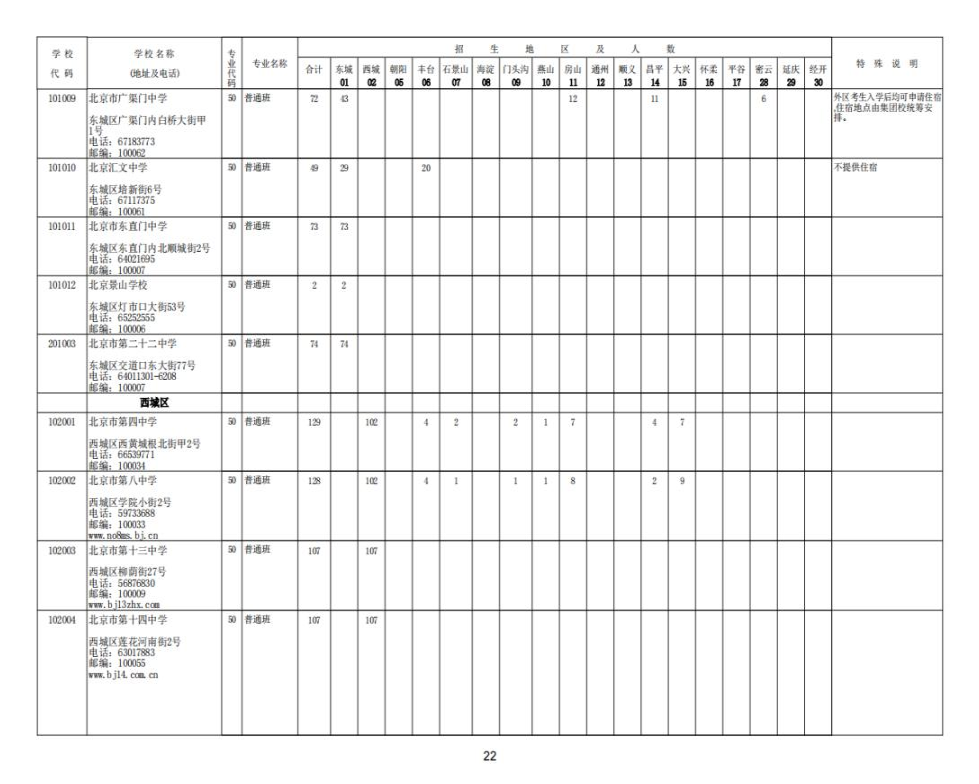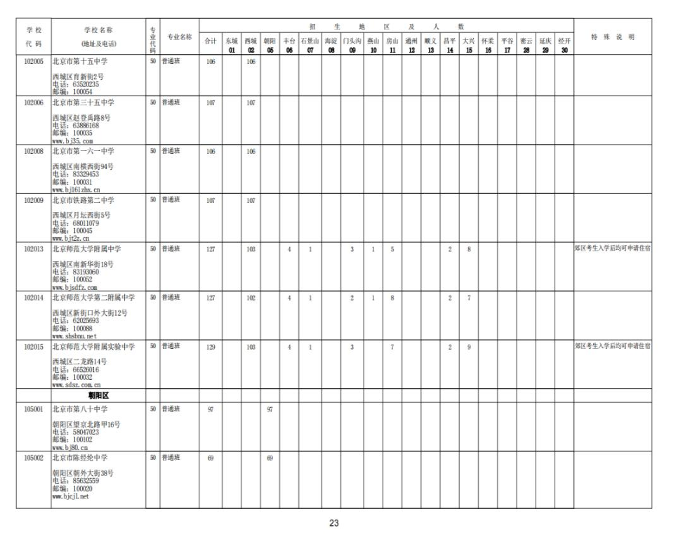 2023北京中考各校招生计划汇总