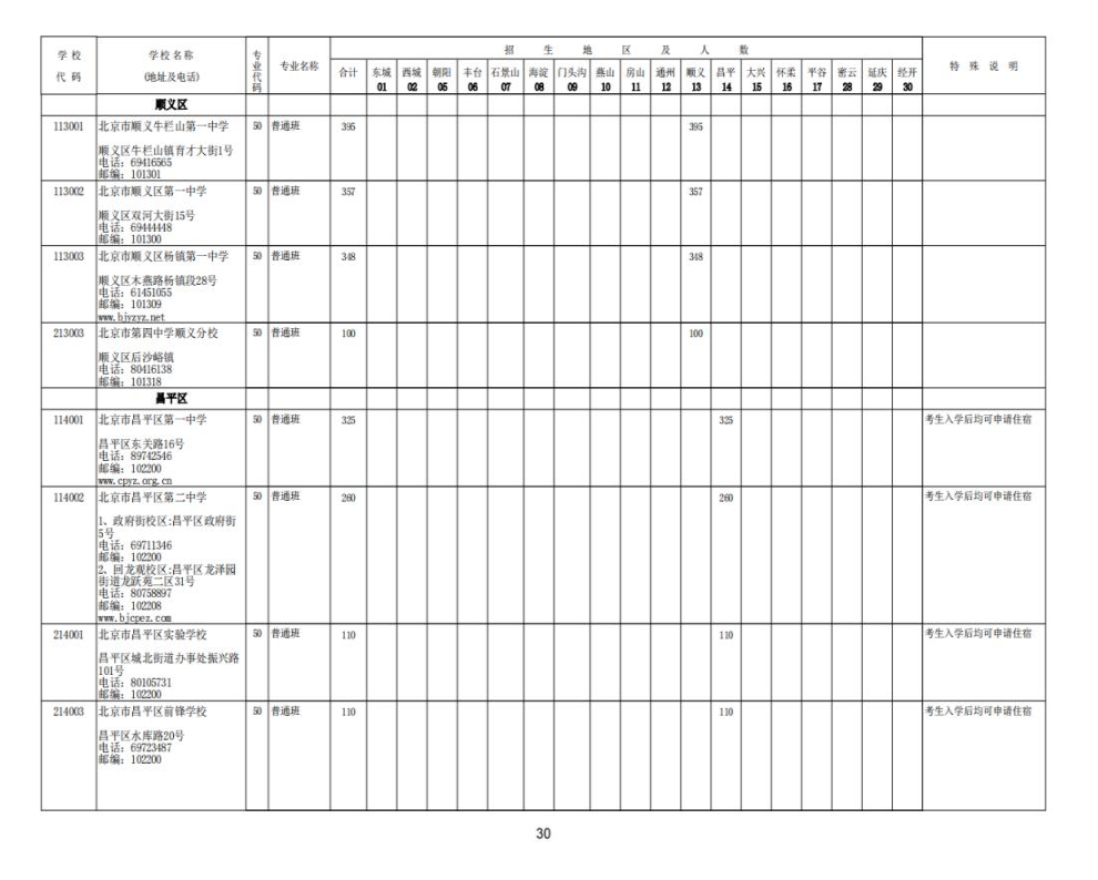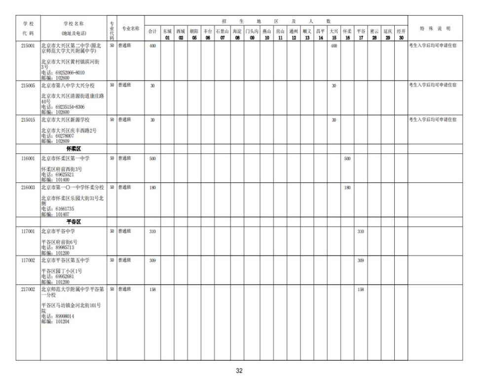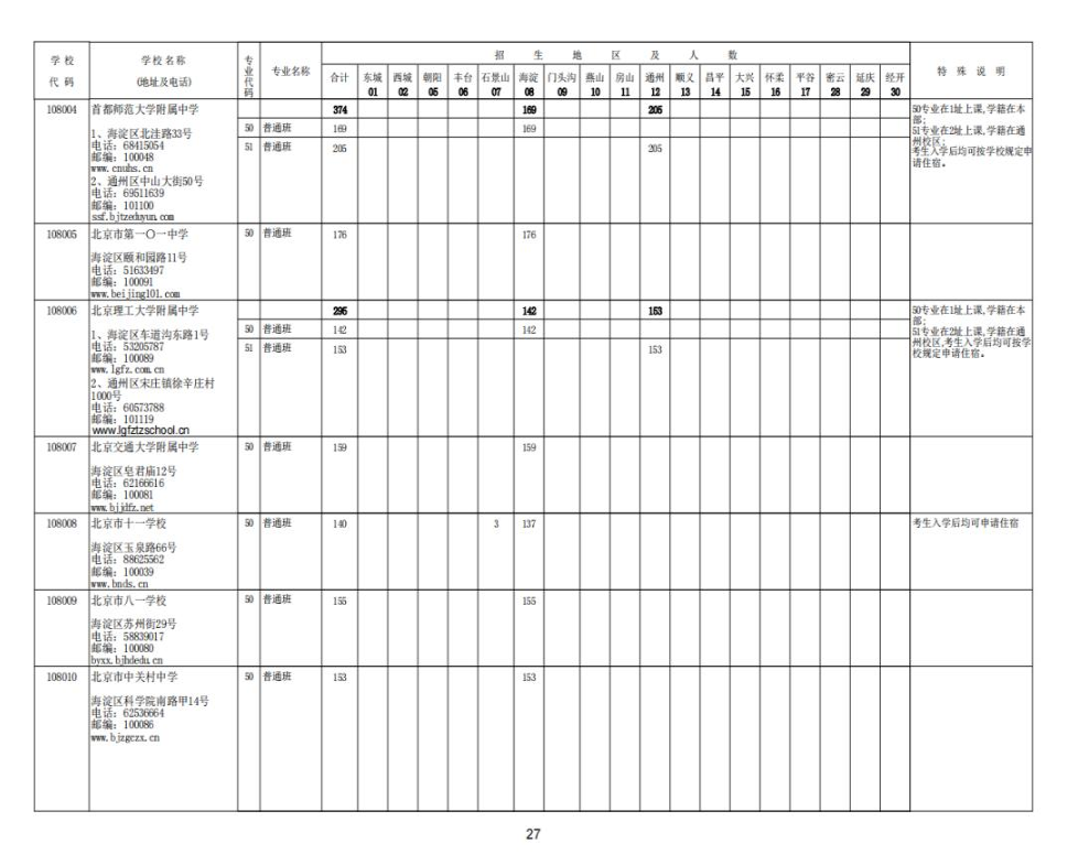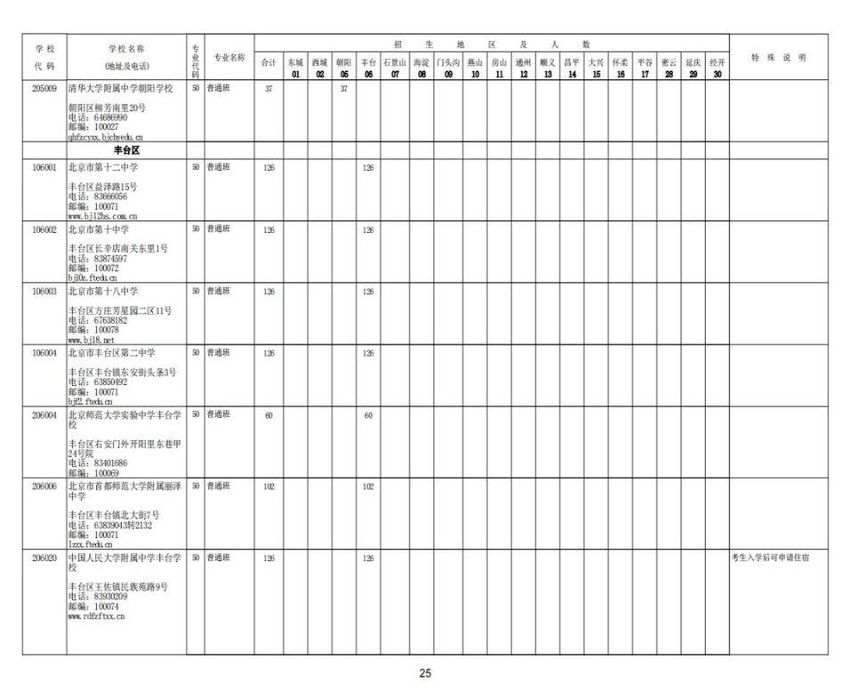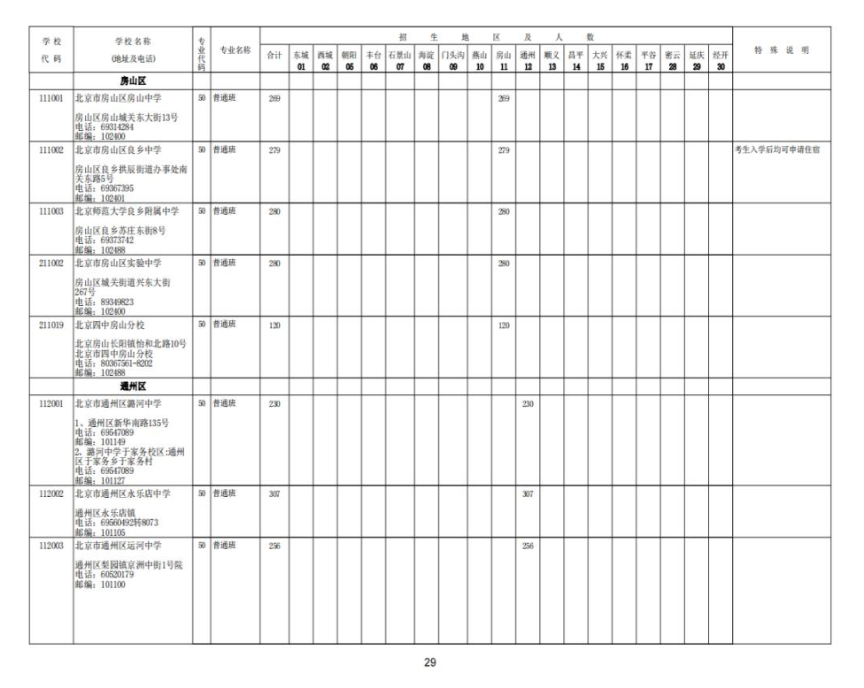 2023北京中考各校招生计划汇总