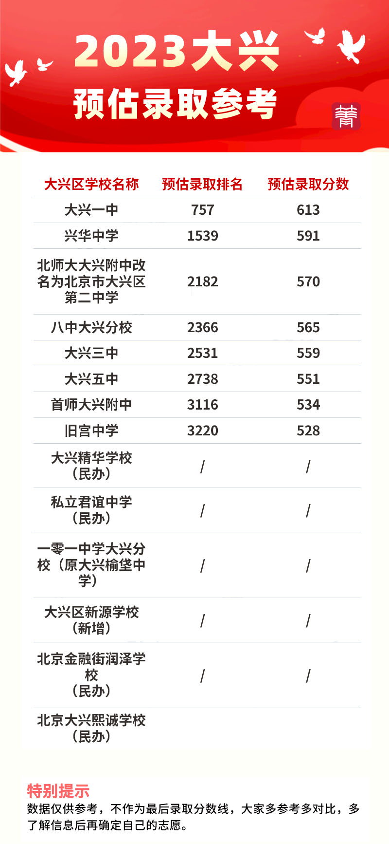 2023年北京大兴区中考各区一分一段表已出,admw360中考网为大家整理了2023北京大兴区高中预估录取分数线。供大家填报志愿参考~