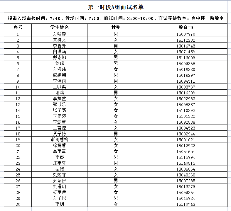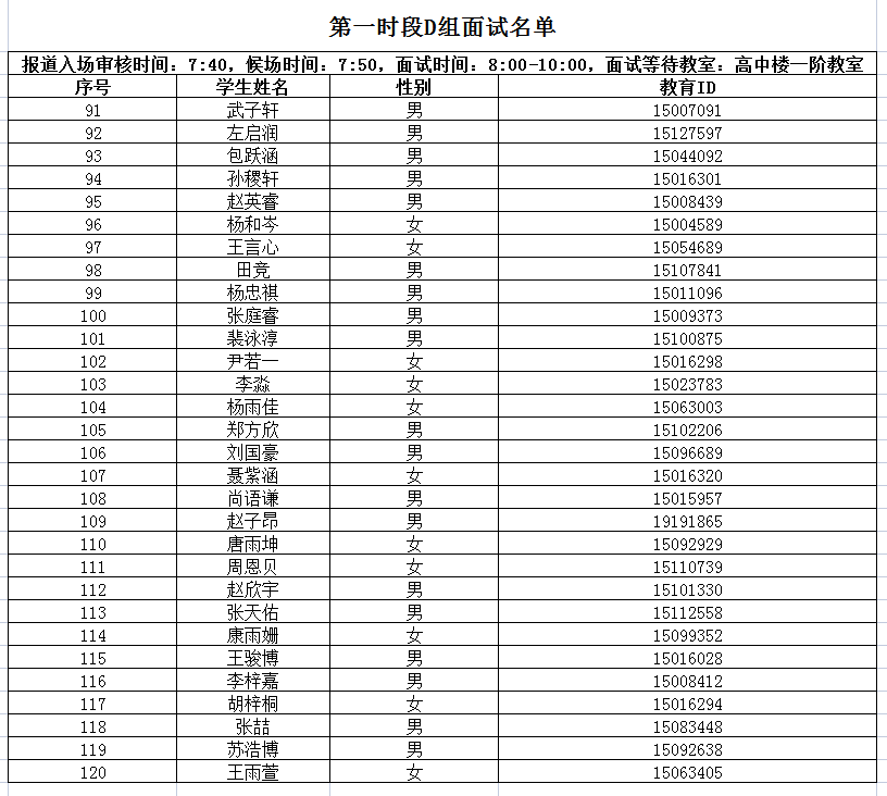 第一时段:A-D组报道入场审核时间:7:40,面试开始时间:8:00, 面试结束时间:10:00