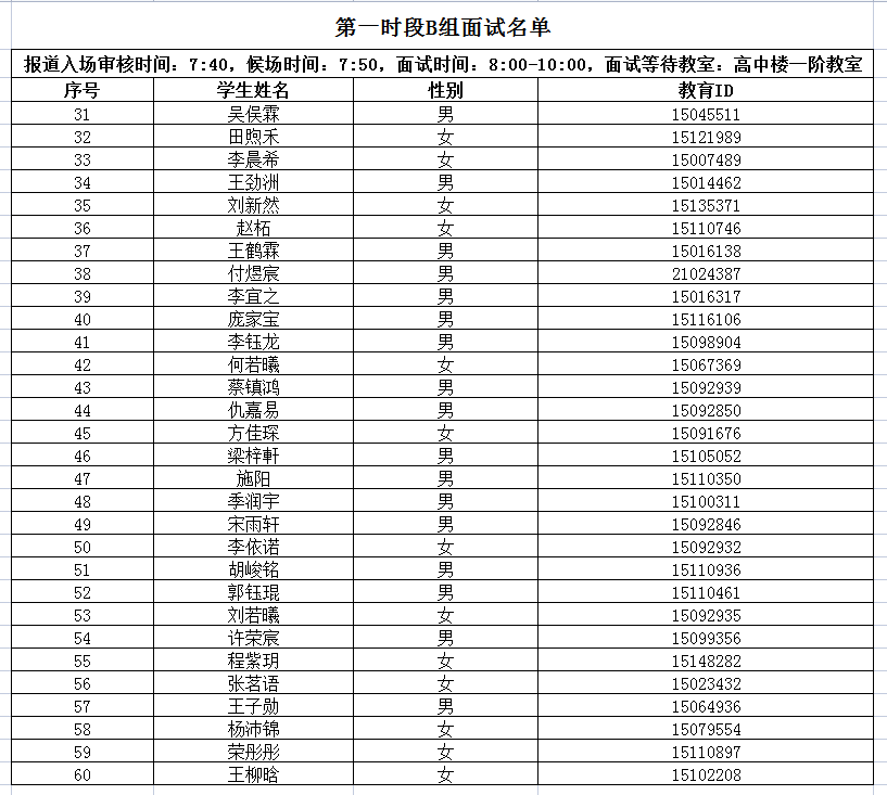 4.请家长分时段,按照面试时间接送学生。学校南门停车位有限,开车的家长请自行解决停车问题。