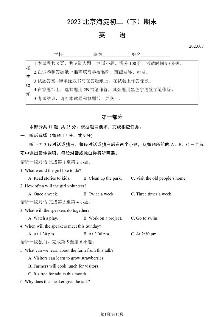 首页 点点ios版官网下载 2023北京海淀区初二(下)期末英语试题及答案