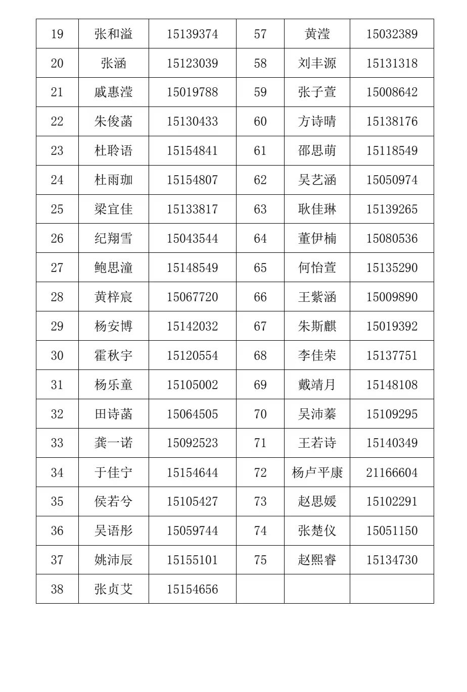 4.序号为1–70号的同学,上午7:20–7:40从学校南门进入学校;序号为71–135号的同学,上午8:50–9:10入校。参加面试的同学注意自己面试的时间,请勿迟到,进校听从引导教师指挥。