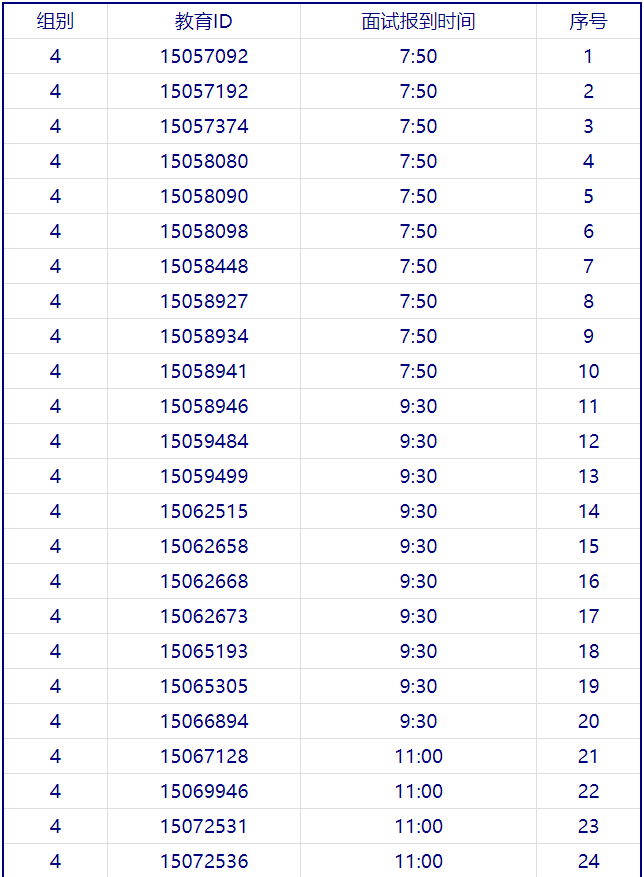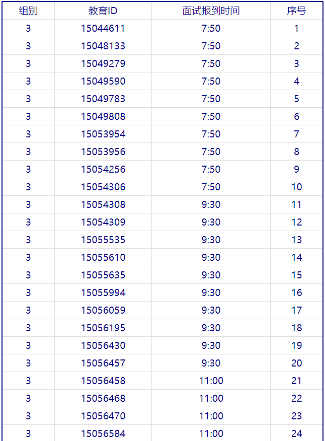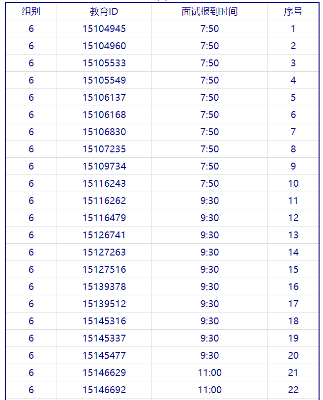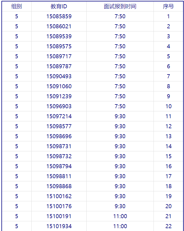 7月22日,分三批组织学生到校面试,第一批上午7:50(第二批9:30、第三批11:00)前到达回龙观校区,按分组安排进入备考室,核验本人学生卡(带照片)或身份证及申请表。