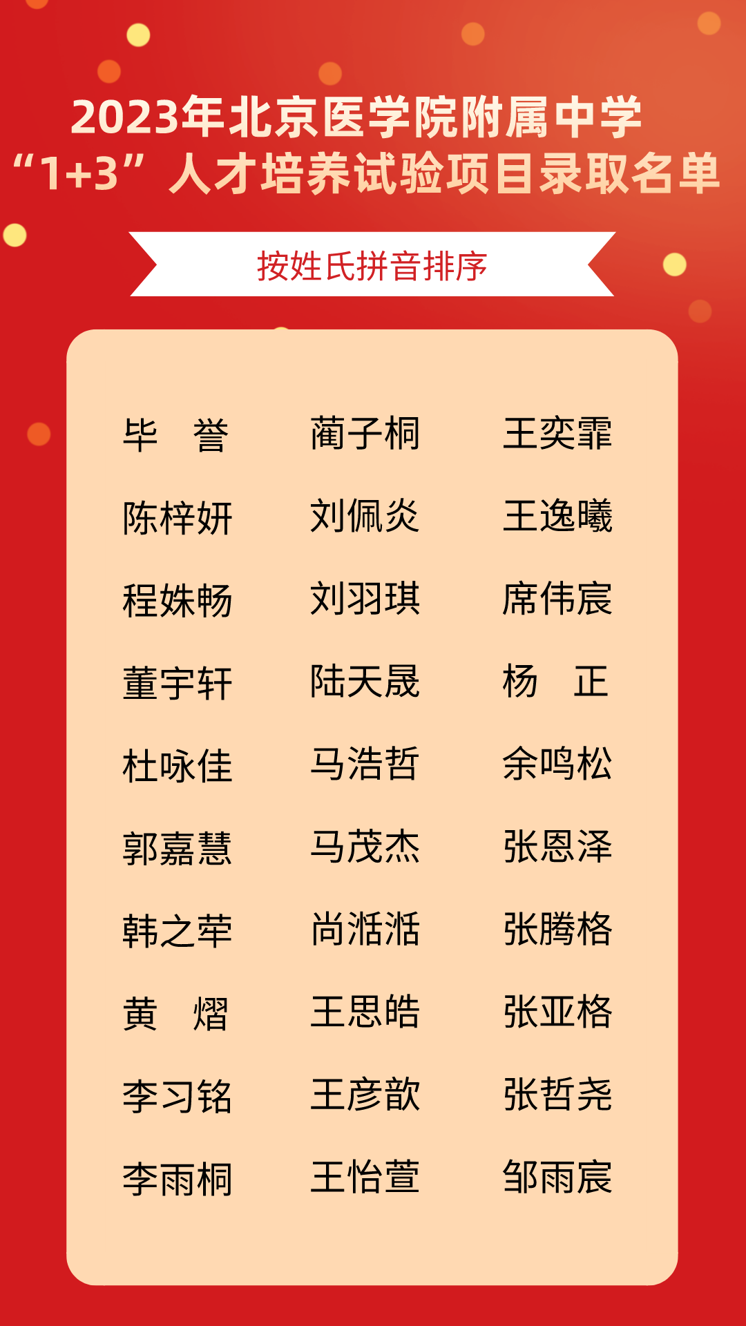 2023年北京医学院附属中学“1+3”人才培养试验项目录取名单
