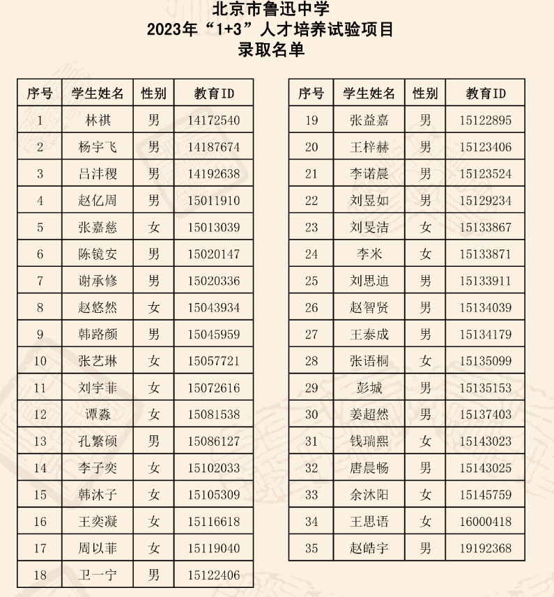 2023年北京鲁迅中学“1+3”项目录取名单发布