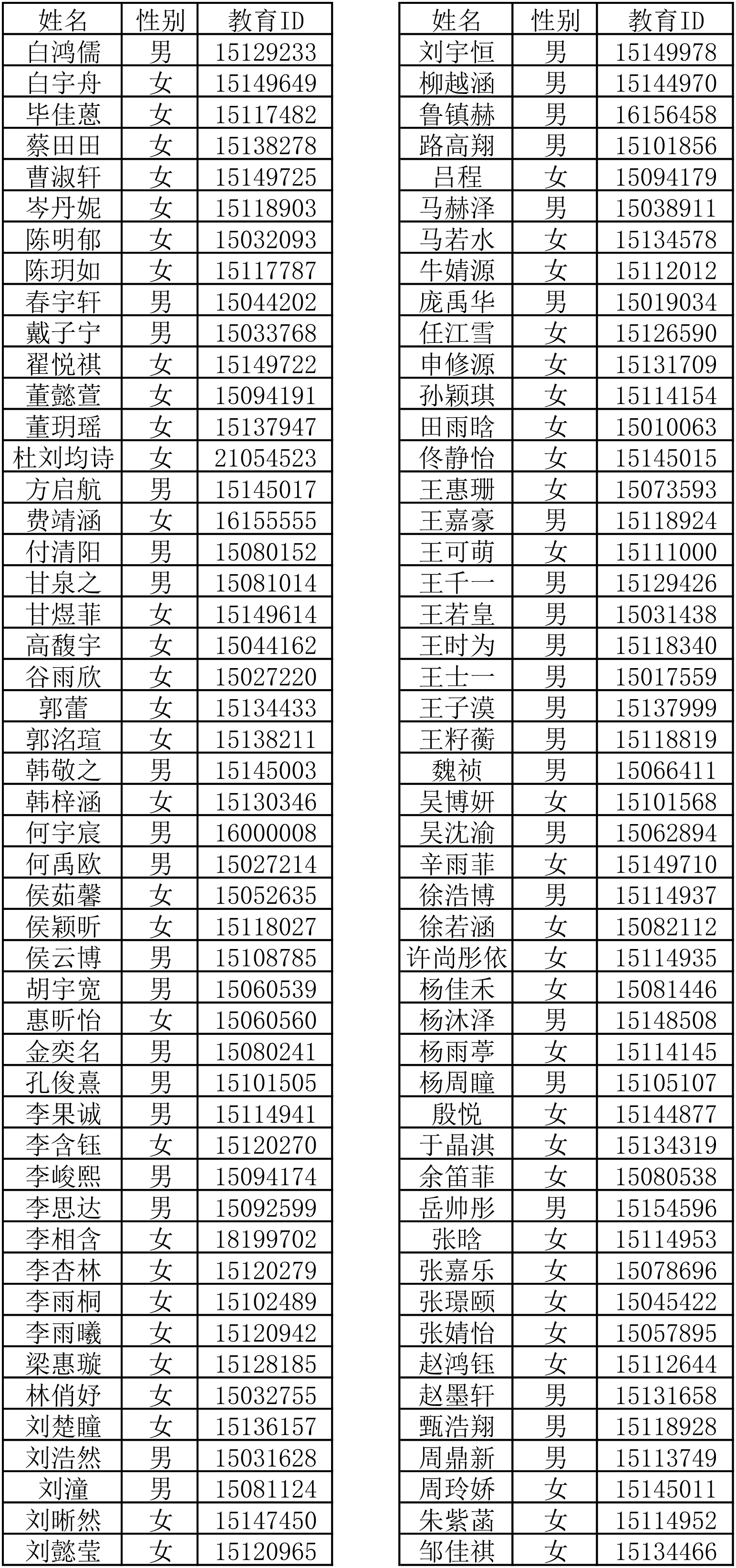 学校参考学生综合素质评价等级和初中学业水平考试各项成绩,结合学校特色培养方向拟定如下面试名单。具体面试时间电话通知!