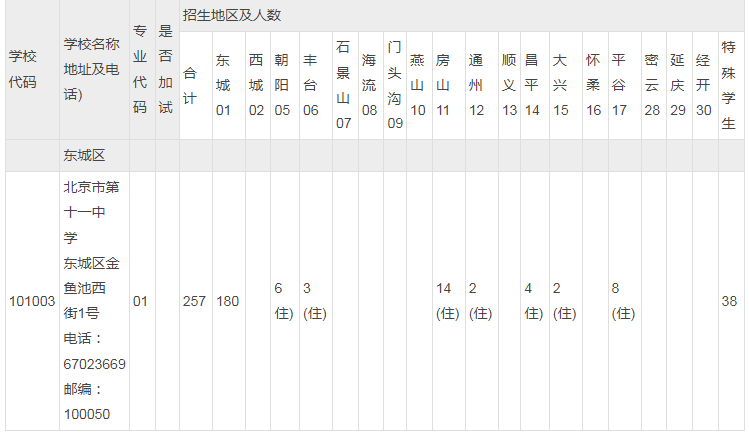 | 北京市第十一中学额到校分配初中校分配名额表 | ||