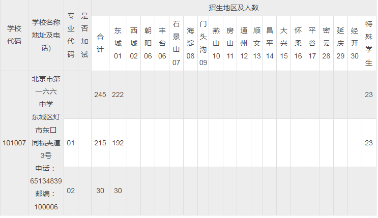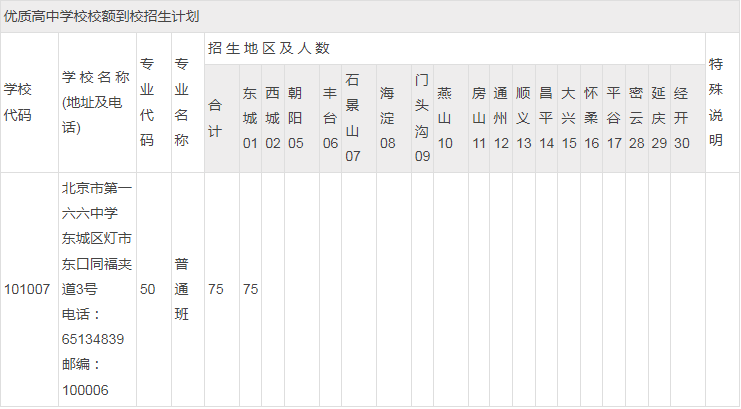 | 北京一六六中学额到校分配初中校分配名额表 | ||