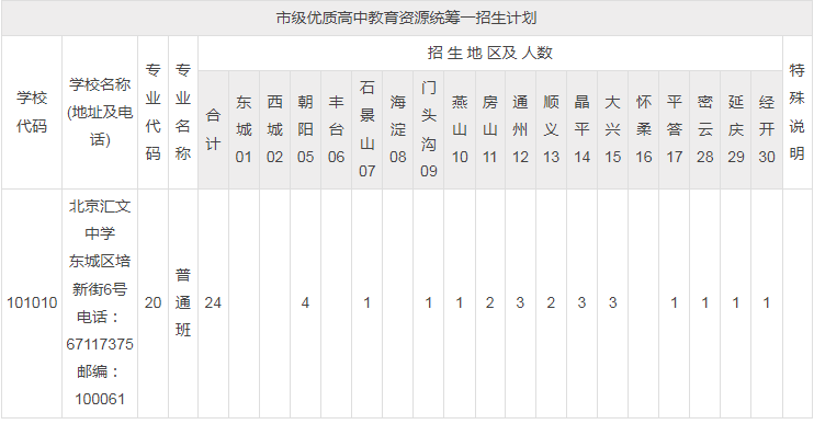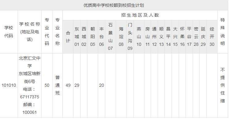 | 北京汇文中学额到校分配初中校分配名额表 | ||