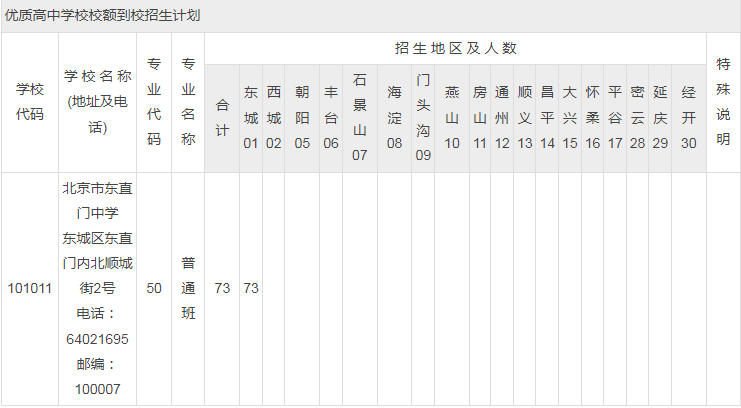 首页 招生计划 2023年北京东直门中学招生计划详情
