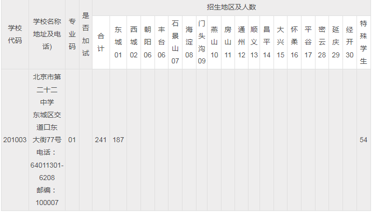 | 北京二十二中学额到校分配初中校分配名额表 | ||
