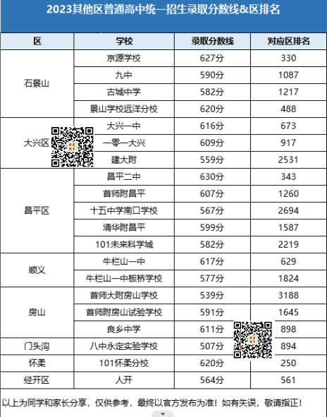 2023北京大兴区中考统招录取线及区排名出炉,admw360中考网为大家整理了详细表格,分享给大家。