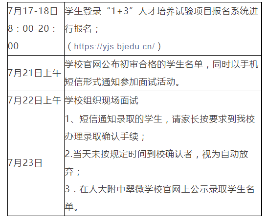 2023人大附翠微学校 1+3项目录取原则