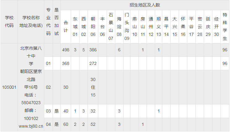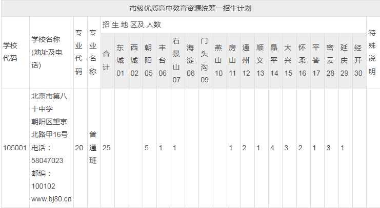 | 北京八十中学额到校分配初中校分配名额表 | ||