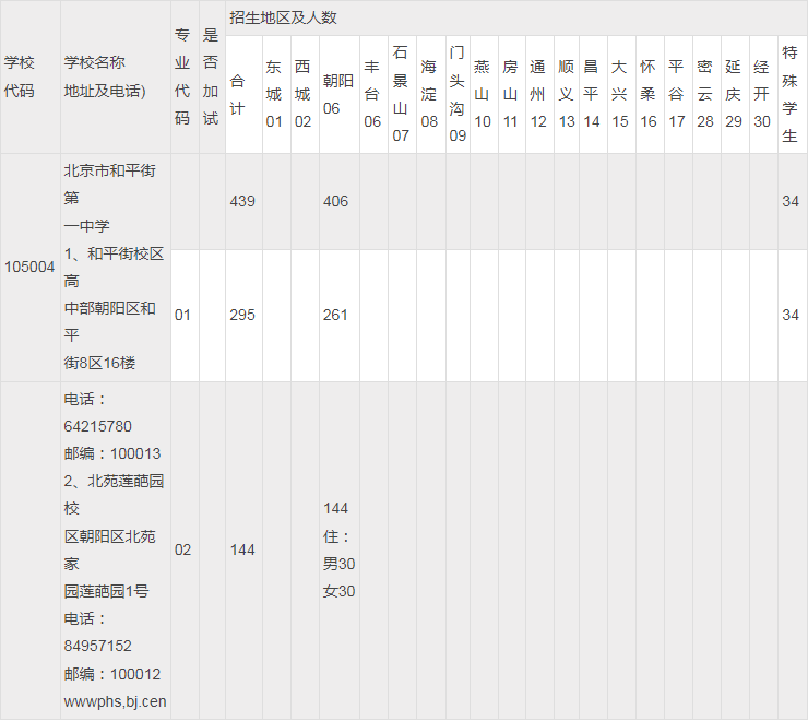 | 北京和平街一中额到校分配初中校分配名额表 | ||