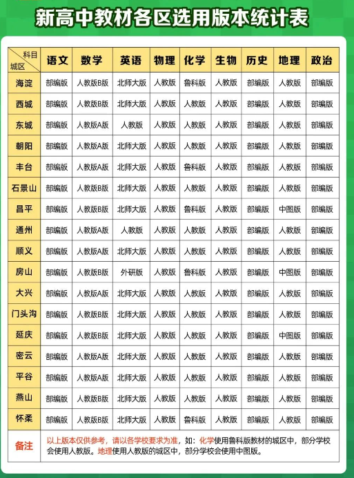 高一学生,北京各区高中都会使用哪些版本的教材呢,快来了解一下吧~