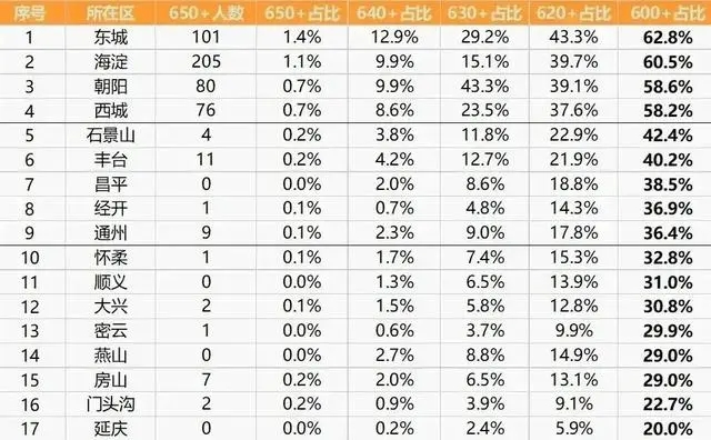 各区的中考高分考生主要集中在海淀、东城、朝阳、西城等地。