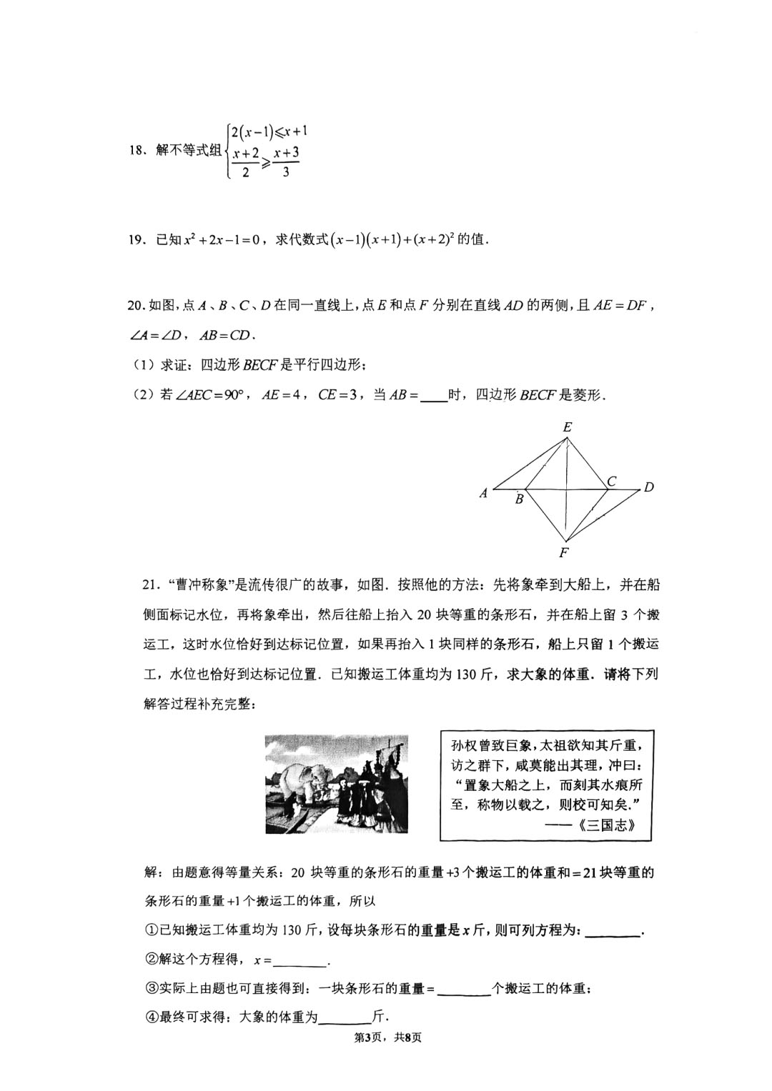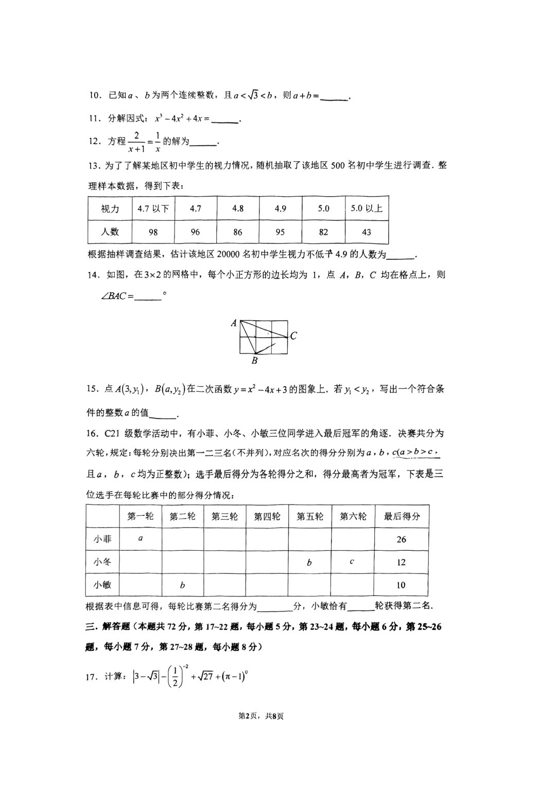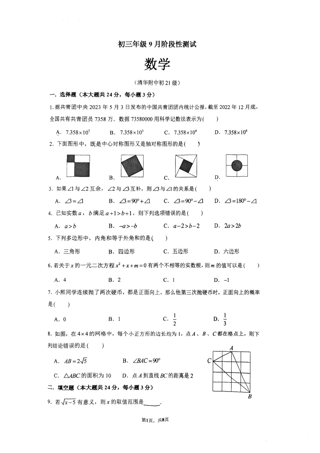 2023-2024学年北京清华附中初三(上)数学开学测试题已出,admw360中考网为大家整理了内容详情,赶紧下载做起来吧。