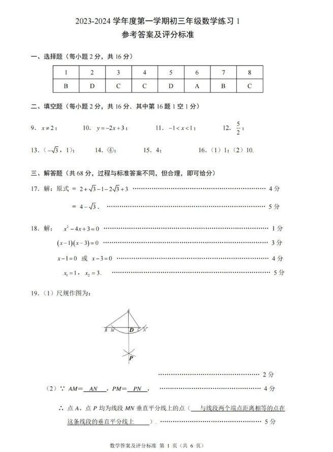 2023-2024学年人大附中初三(上)开学测数学试题答案已出,admw360中考网为大家整理了内容详情,赶紧下载做起来吧。