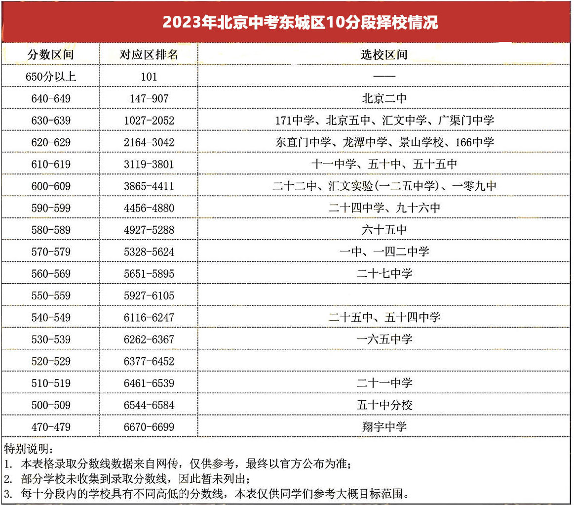 根据目前收集到的数据,2023年东城区录取分数线最高的学校为北京二中644,录取位次为502;最低为翔宇中学477,对应录取位次为6677; 2023年北京各区初三期中成绩区排名、…