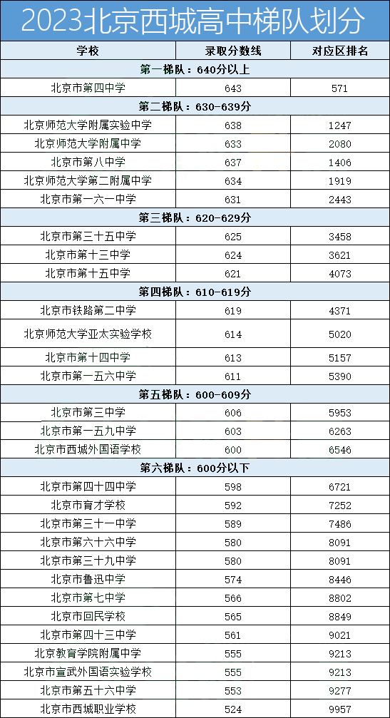 近日西城期中区排名出炉(戳蓝字查看),很多考生在后台留言询问往年中考录取分数线&区排名,以作选校参考,看自己能上哪个梯队的高中!今天特别整理了西城区,快来测一测你的成绩能上哪所高中?