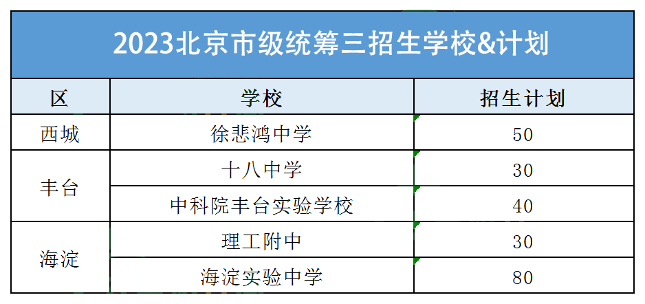 2、对中考特长生来讲,“城区”为招收东城、西城、朝阳、丰台、石景山、海淀考生,“郊区”为招收门头沟、燕山、房山、通州、顺义、昌平、大兴、怀柔、平谷、密云、延庆、经开考生,“本区”为招收本区考生,“全市”为招收全市考生。
