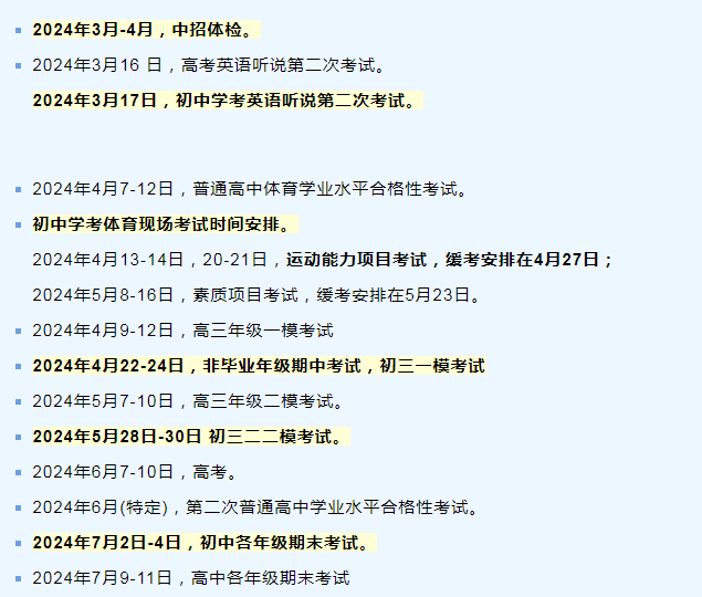 2024第二学期重要考试安排