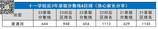 为方便2024年中考生参考,特整理了近3年十一学校的录取分数线&区排情况~