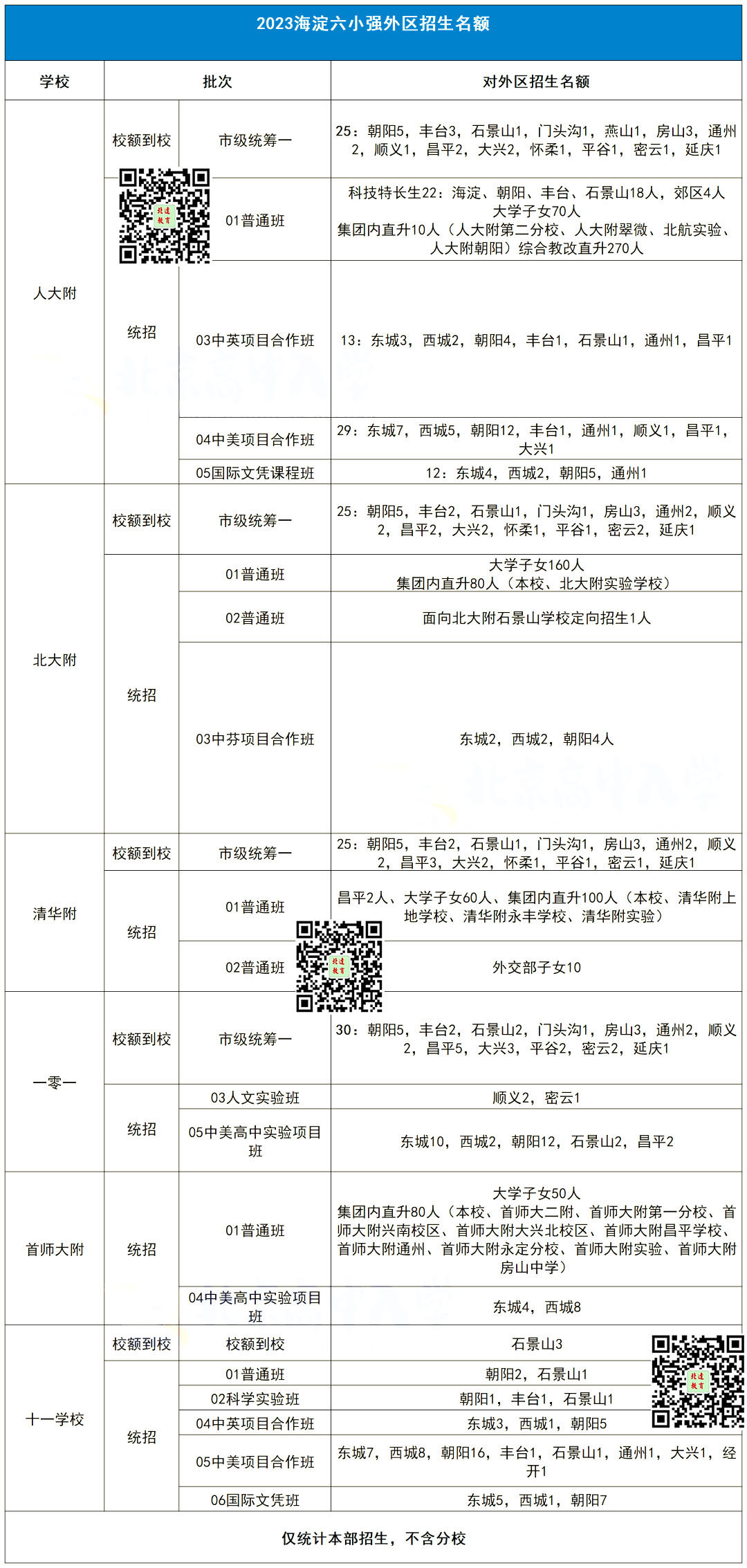 北京中考实行锁区,各区考生基本只能在本区升学。但也有少量学校对外招生,admw360中考网整理了2023北京海淀区第一梯队校的跨区招生计划,快来看有你的目标校吗?