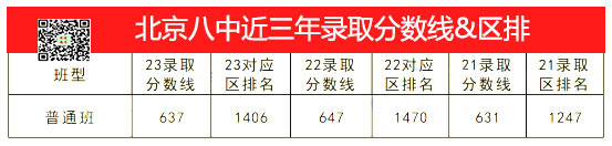 为方便2024年中考生参考,特收集整理了北京八中近3年的录取分数线&区排,快来参考!