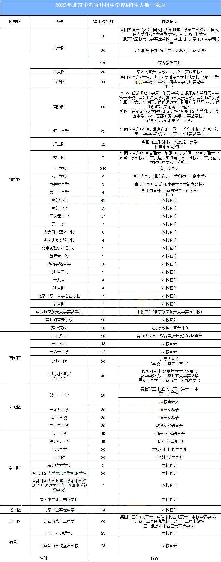 5、综合教改直升:个别学校有综合教改直升的招生计划,如人大附中2023年有270个综合教改直升名额;