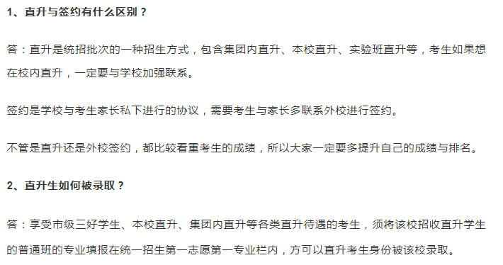 选择直升的考生须将学校招收此类考生的普通班专业填报在统一招生第一志愿第一专业。