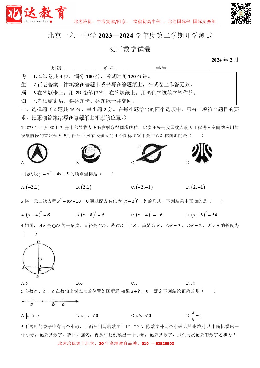 admw360中考网整理分享了2023~2024学年2023~2024北京一七一中学初三下开学考数学试题,需要的同学赶紧下载练习吧。