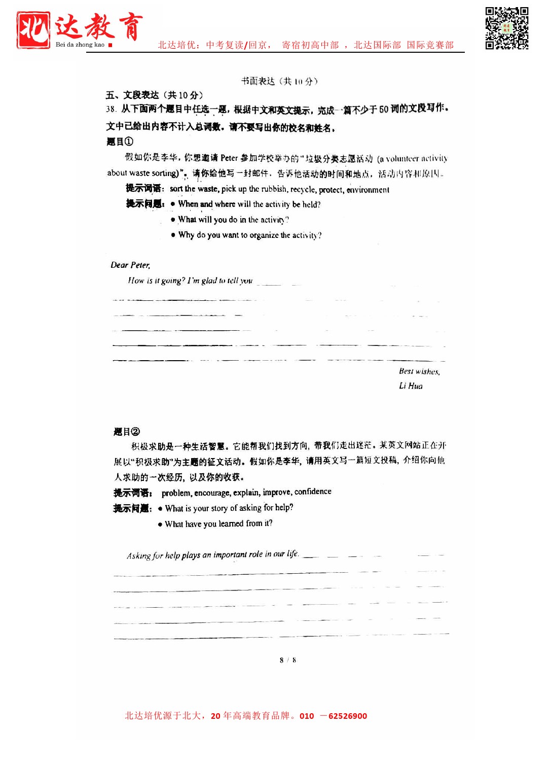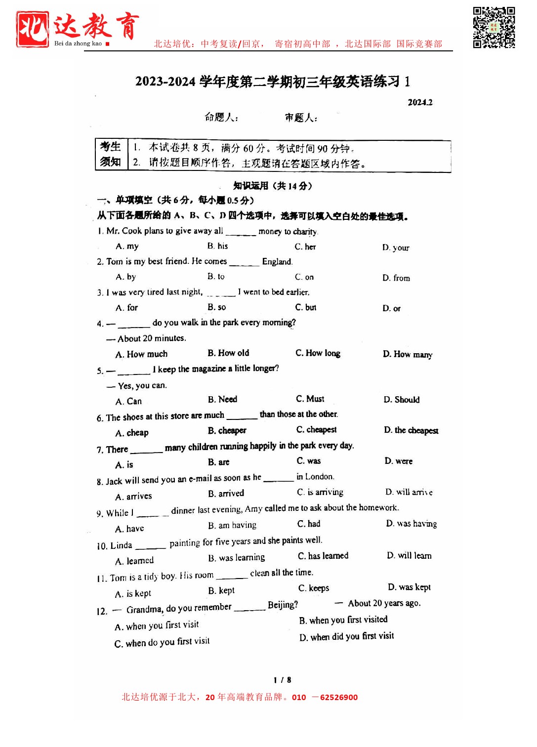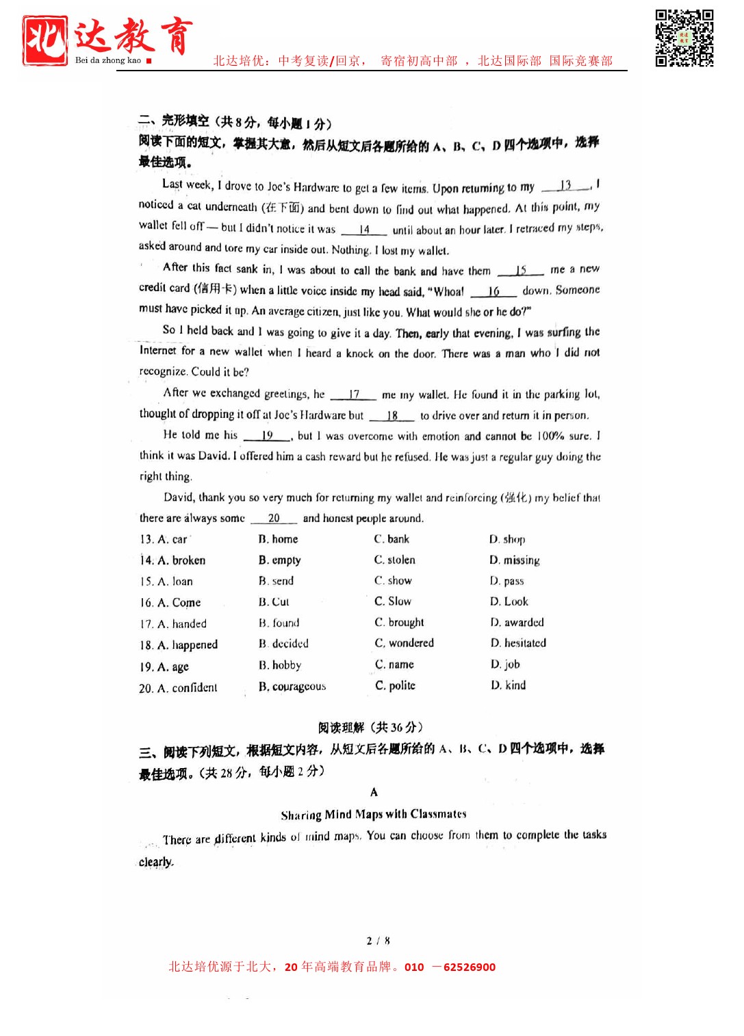 admw360中考网整理分享了2023~2024学年北京人大附中初三(下)开学考英语试题,需要的同学赶紧下载练习吧。