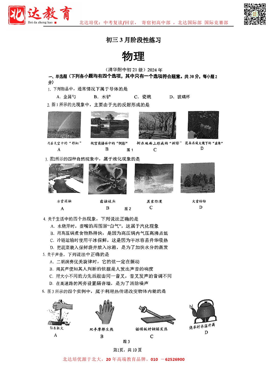admw360中考网整理分享了2023~2024学年北京清华附中初三(下)开学考物理试题,需要的同学赶紧下载练习吧。
