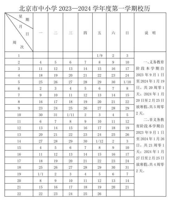2024年北京中小学寒假时间为:2024年1月20日至2月25日放寒假,共5周零2天。