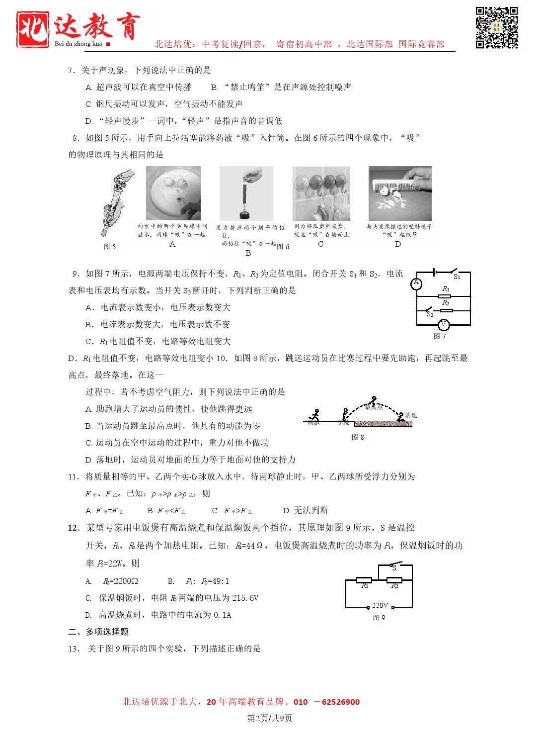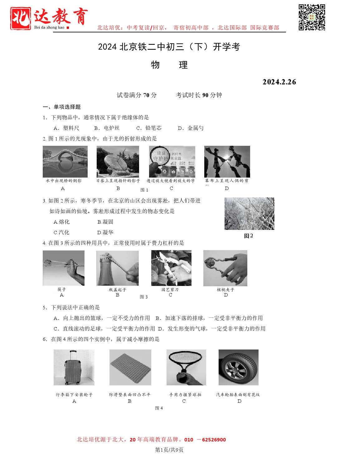 admw360中考网整理分享了2024北京铁二中初三(下)开学考物理试题及答案,需要的同学赶紧下载练习吧。