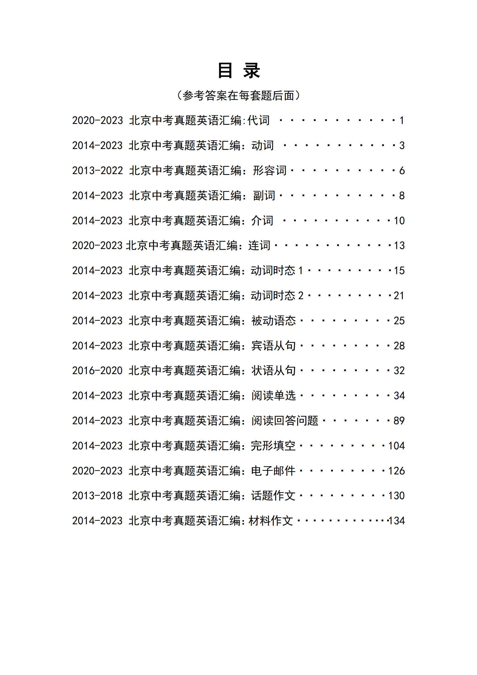 随着中考的临近,备考已成为学生们关注的焦点。为了更好地帮助学生们备考,本文将为大家提供一份2014-2023年北京中考英语真题分类汇编,以便学生们更好地了解考试内容和难度。