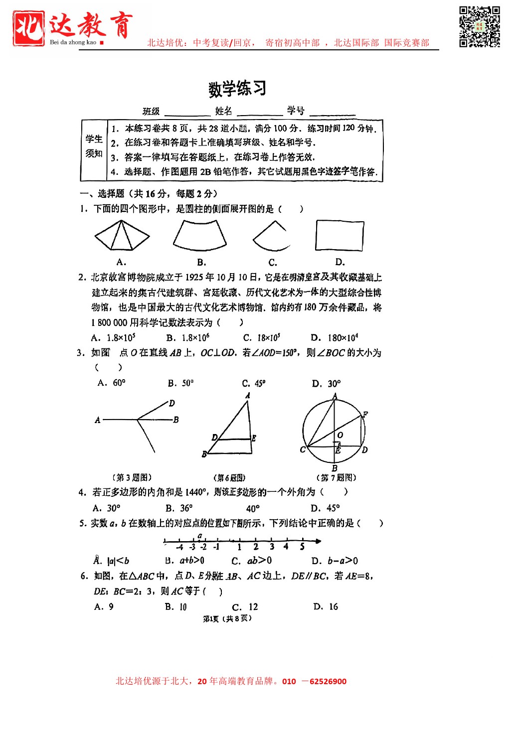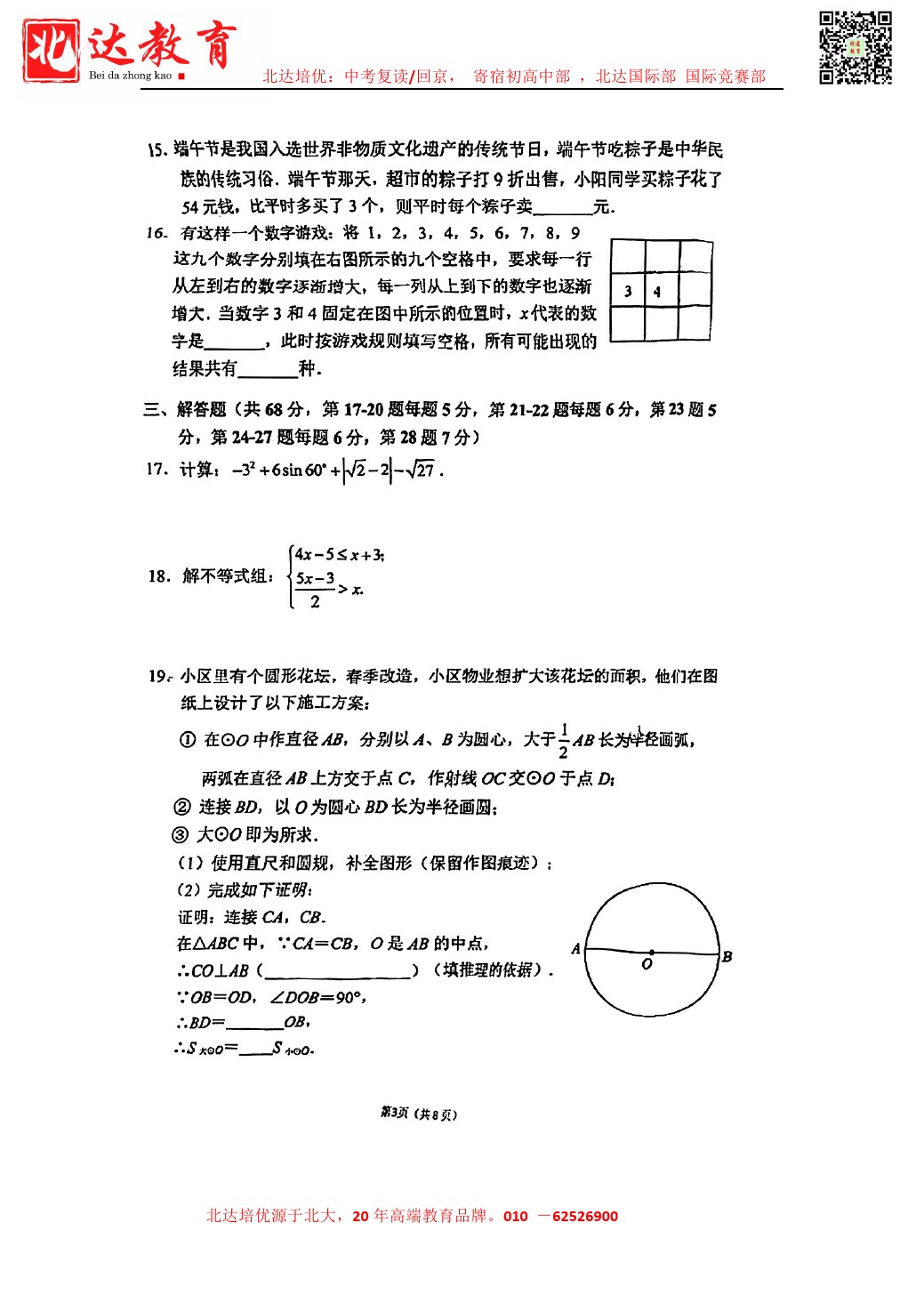 admw360中考网最新整理了2024北京四中初三3月月考数学试卷,需要的同学赶紧下载练习吧! 北京admw360全日制学校,中高考复读,外地回京中高考 电话咨询:400-6168182 010-62…