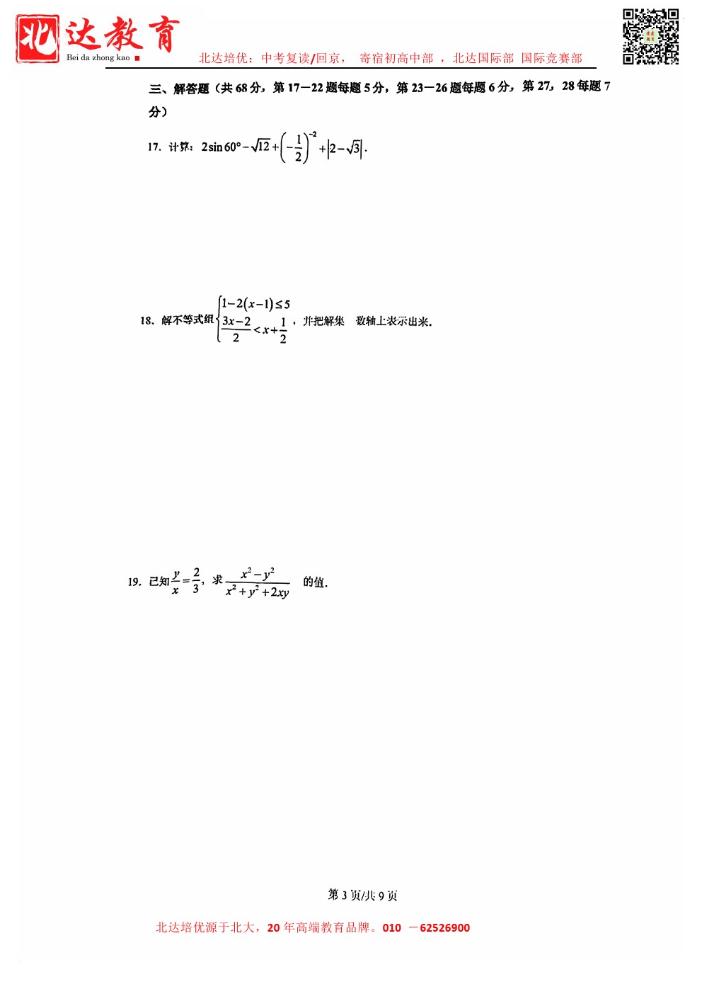 admw360中考网最新整理了2024北京理工大学附属中学初三3月月考数学试卷,需要的同学赶紧下载练习吧! 北京admw360全日制学校,中高考复读,外地回京中高考 电话咨询:400-6168182 …