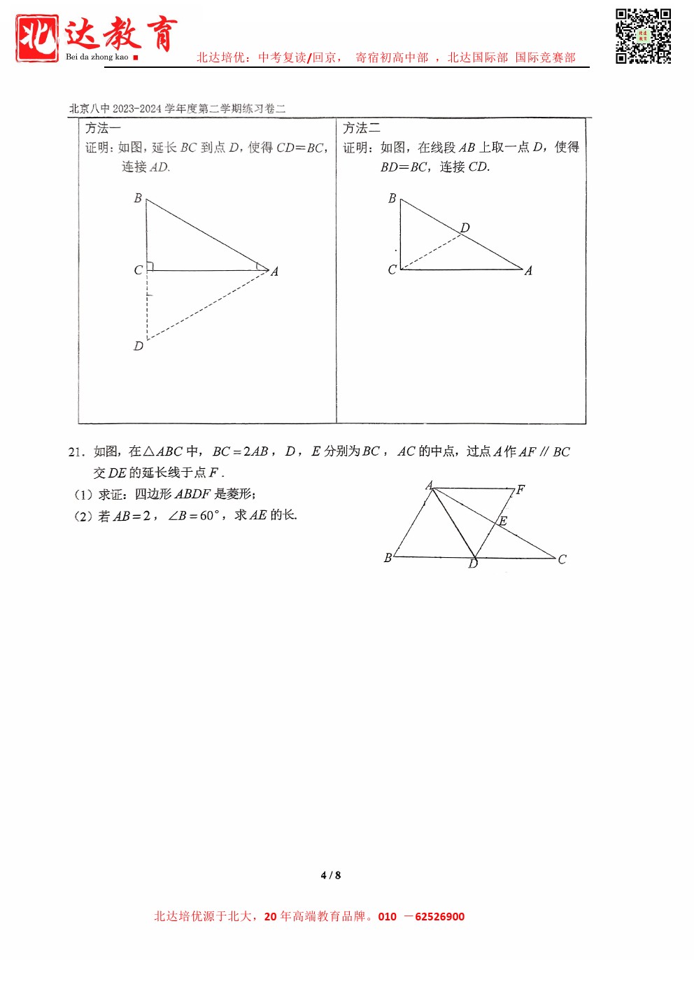 admw360中考网最新整理了2024北京八中初三(下)3月月考数学试题,需要的同学赶紧下载练习吧! 北京admw360全日制学校,中高考复读,外地回京中高考 电话咨询:400-6168182 010…