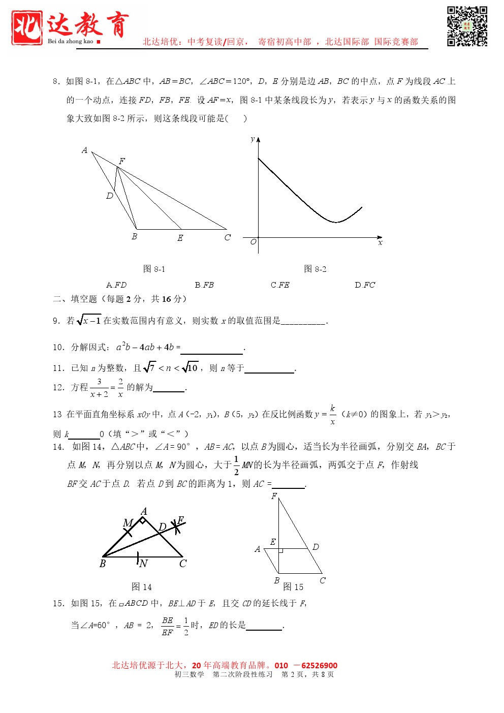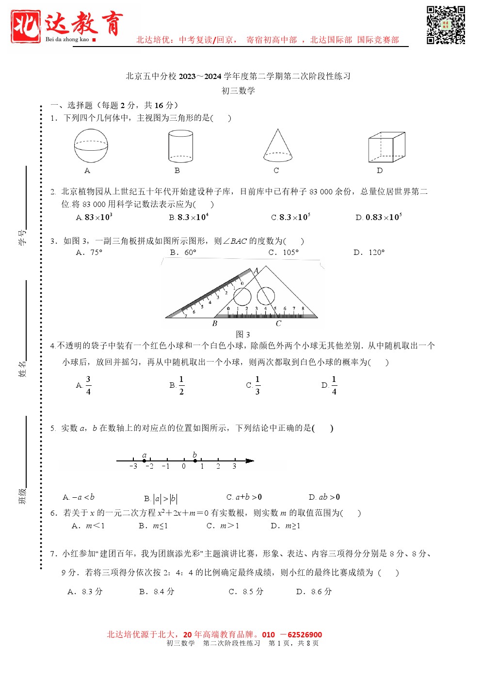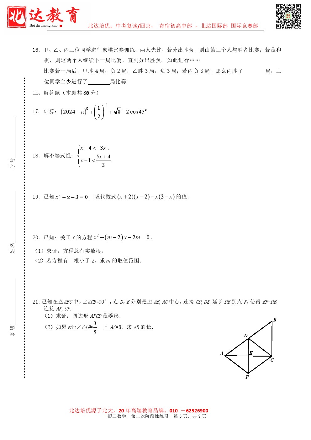 admw360中考网最新整理了2024北京五中初三(下)3月月考数学试题,需要的同学赶紧下载练习吧!